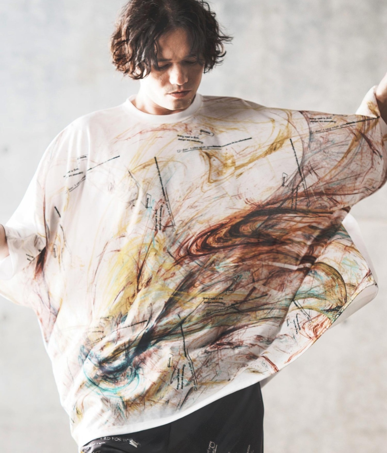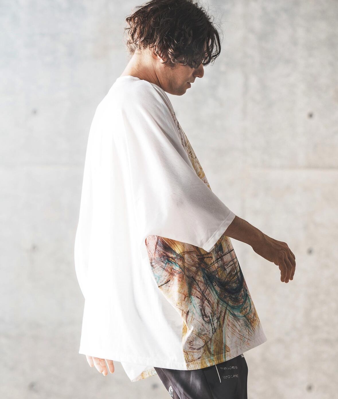 アーティスティックなインパクトあるプリントと、スーパービッグシルエットに仕立てた個性的なフォルムがあいまった存在感抜群のT-shirtです。