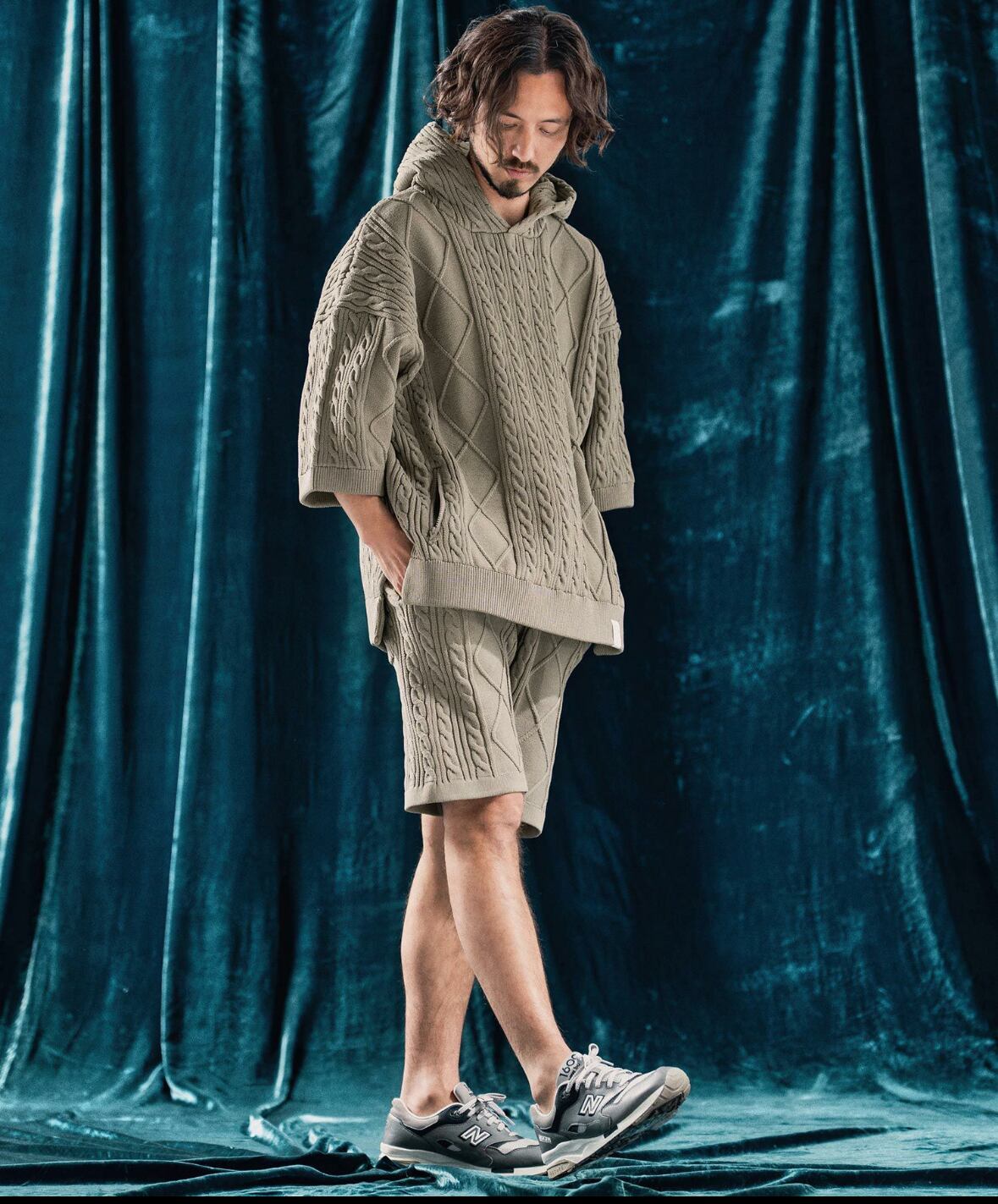 セットアップ対応のトップスアイテムは、Airy yarn cable stitch short sleeve hoodie(AG04-001scf)です。