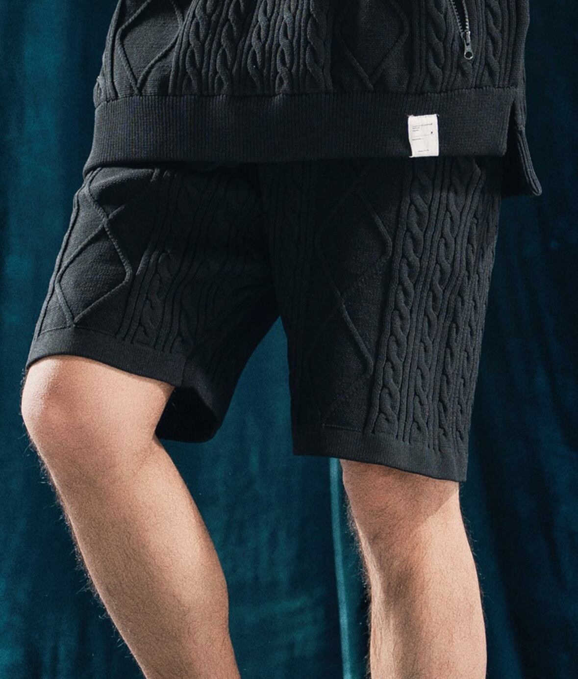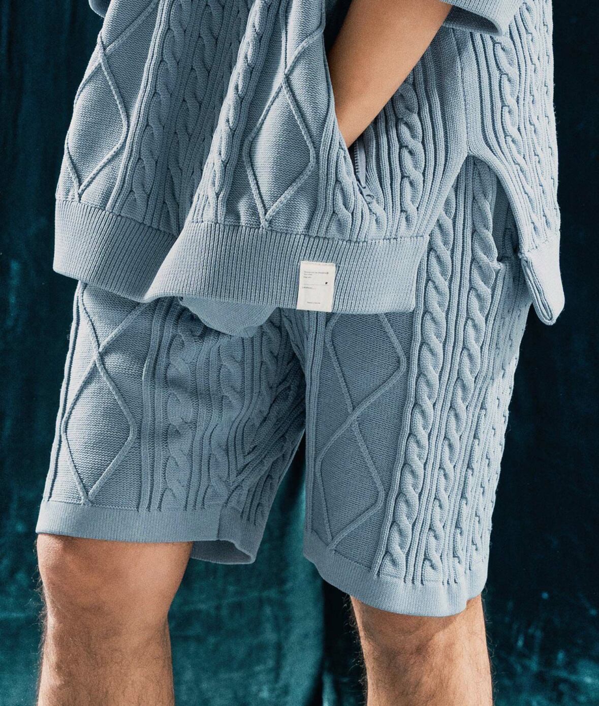 発色の良いポリエステル糸を使用してケーブル編みにした立体感のある表情が特徴。