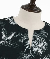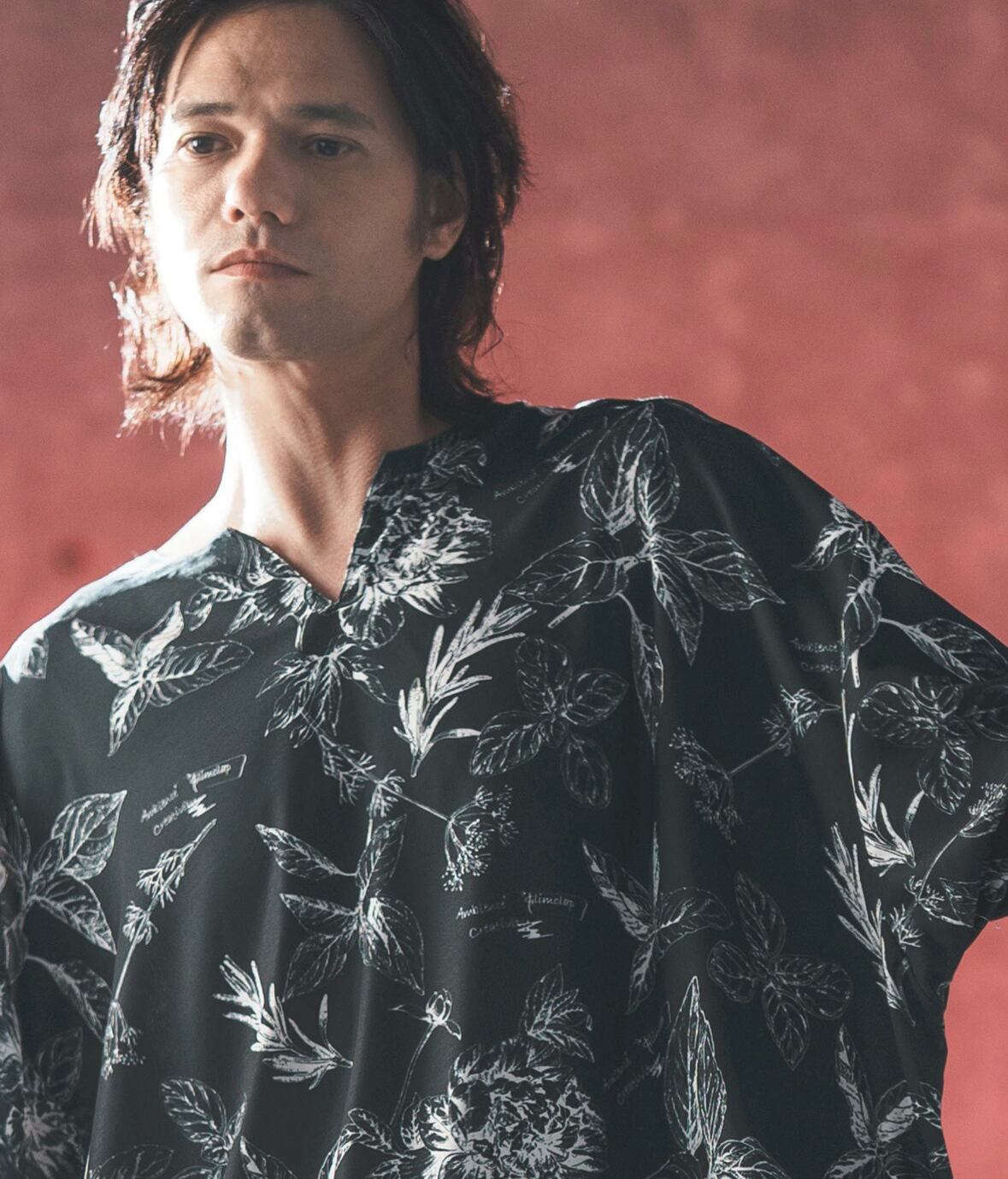 モノトーンボタニカルパターンを清涼感のある軽やかなファブリックにプリントしたシャツプルオーバーです。