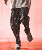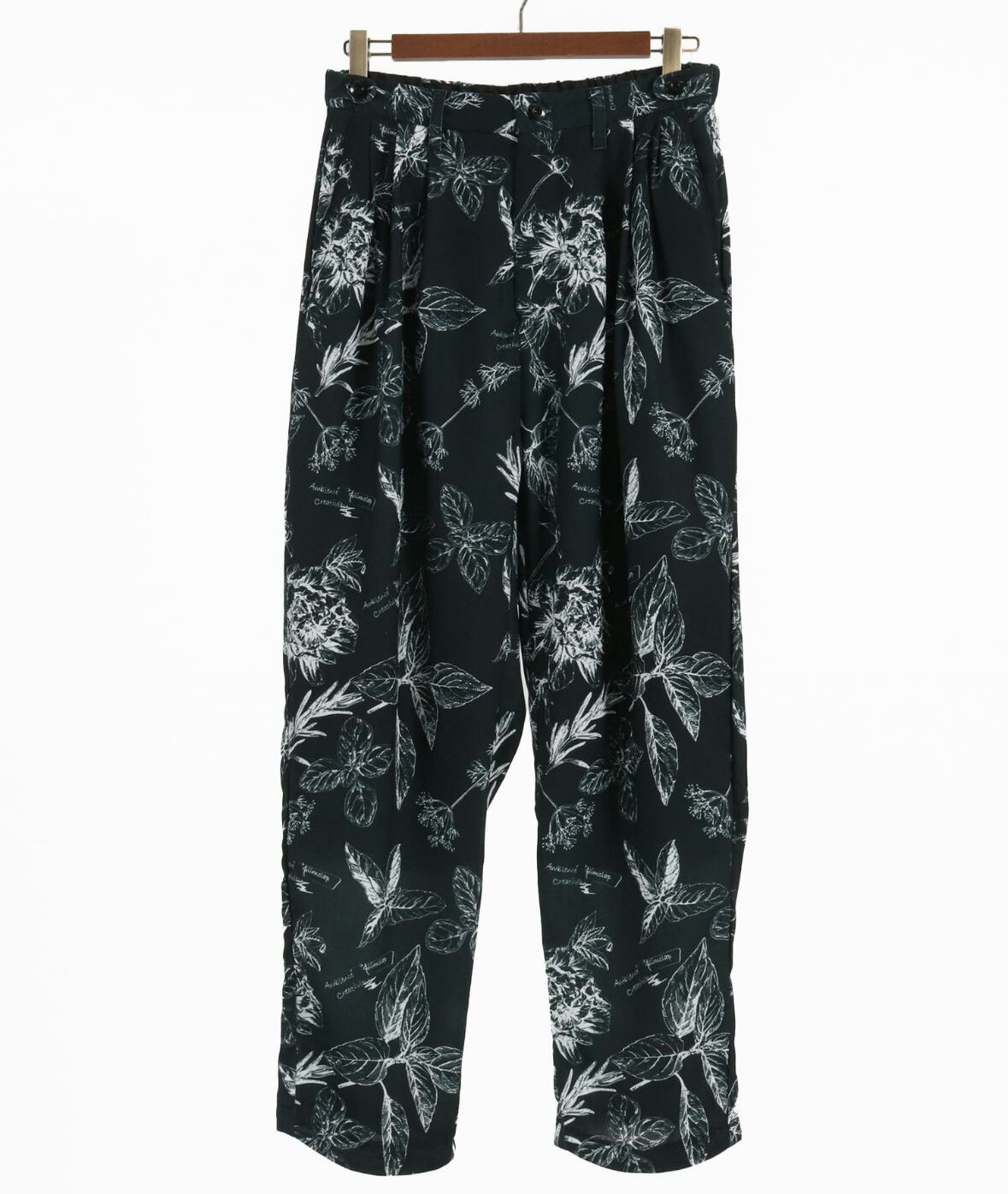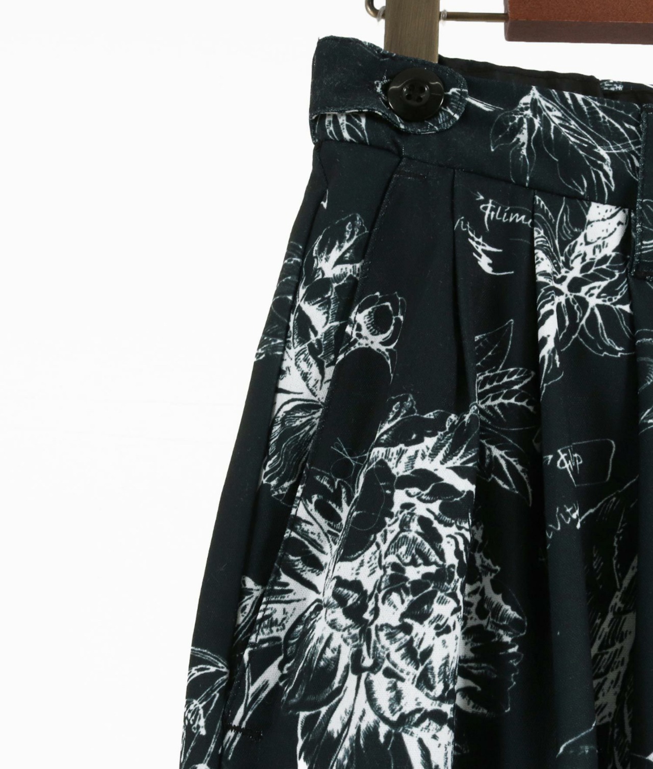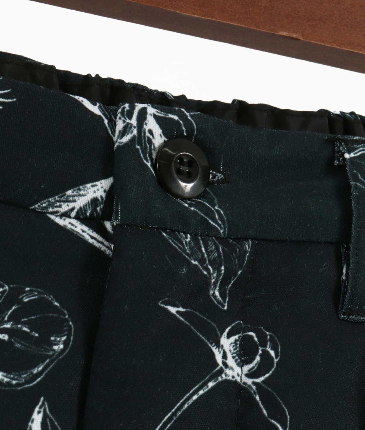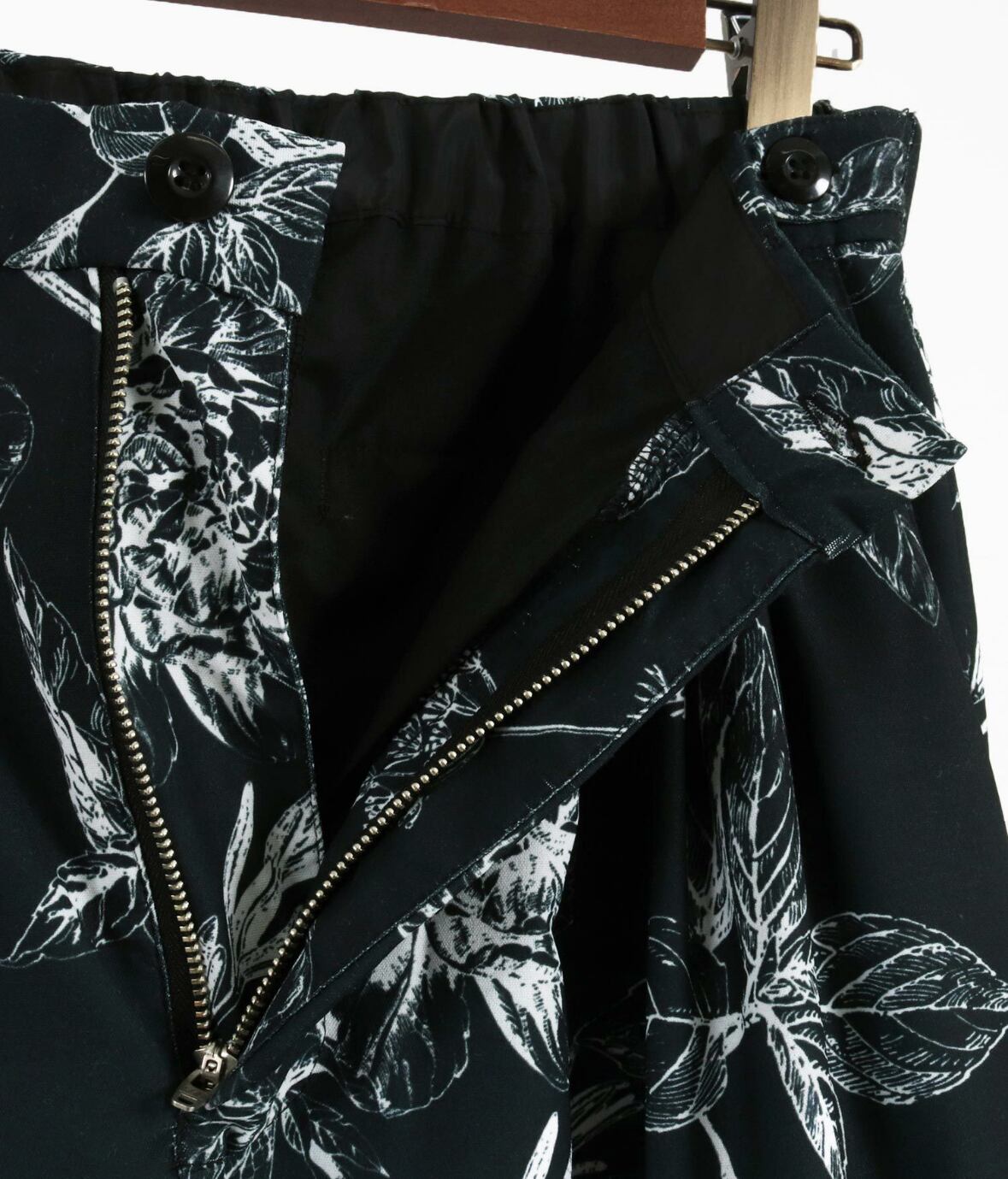 モノトーンボタニカルパターンを清涼感のある軽やかなファブリックにプリントしたリラックスパンツです。