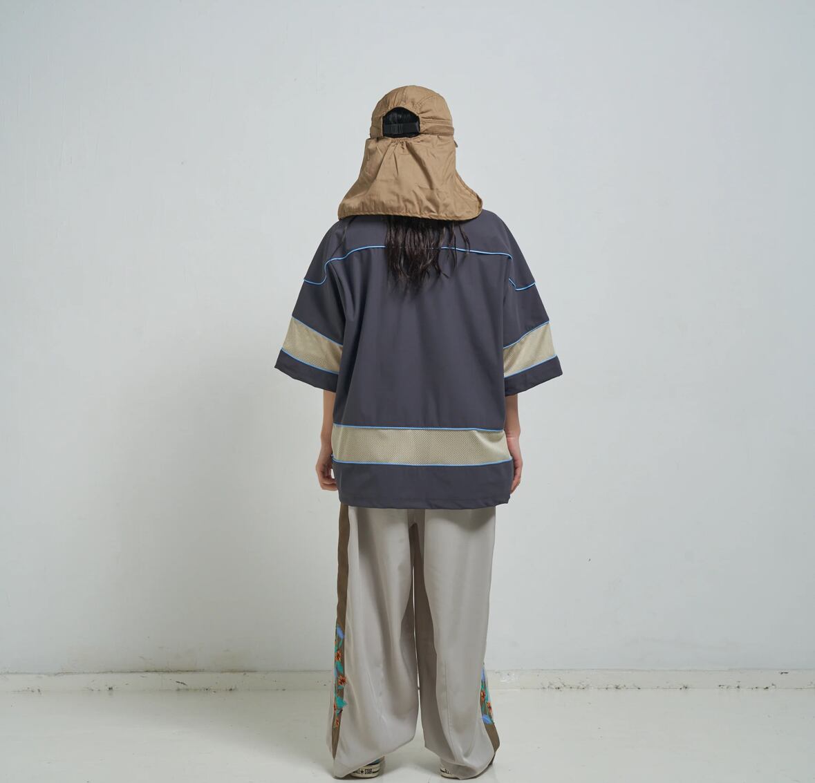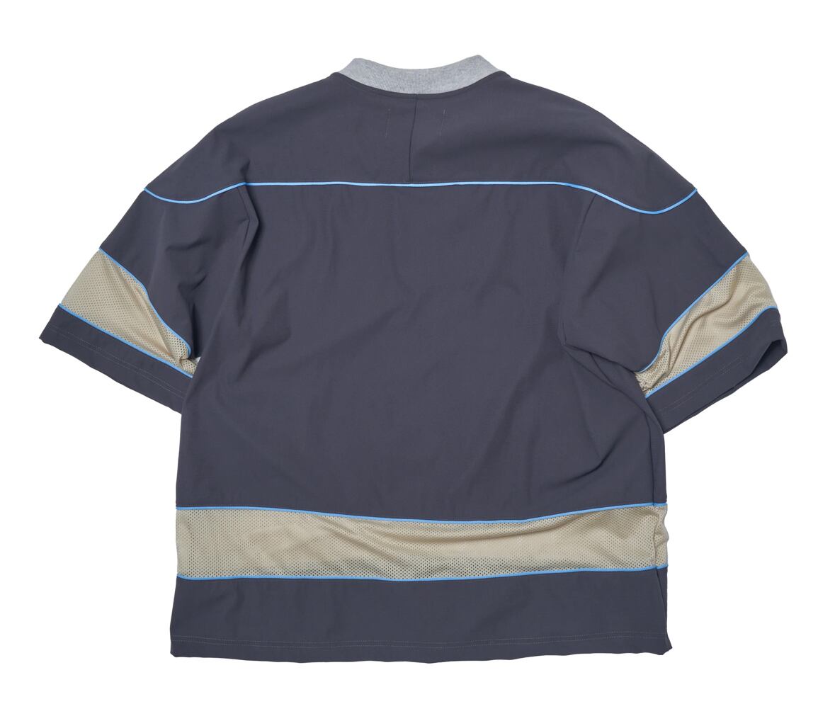 ビッグシルエットながら、身頃,袖ともにメッシュ切替でライトな印象に。